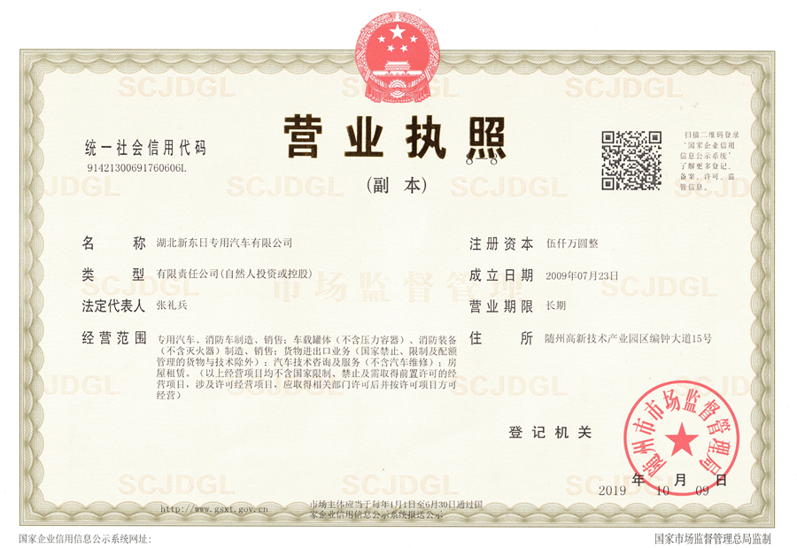 版權所有 湖北新東日專用汽車有限公司 備 案 號:
