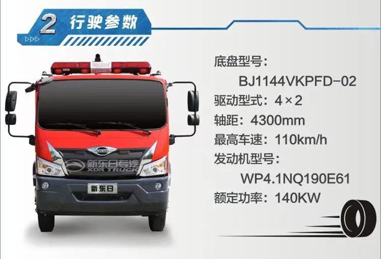 底盤配置:福田190馬力(140KW)國六發(fā)動機,底盤型號:BJ1144VKPFD-02,發(fā)動機型號:WP4.1NQ190E61,軸距:4300,雙排駕駛室,帶空調。
